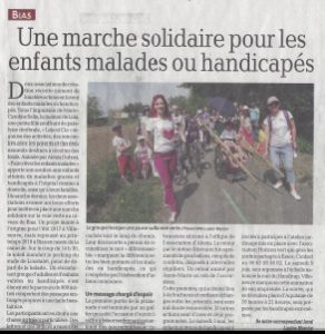 Avec l’association Faire rêver les enfants malades (merci Alexia), nous avons organisé sur le voie verte départ du stade de Bias une marche solidaire sous forme de chasse au trésor.