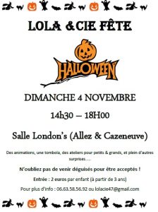 Animations : ateliers créatifs, une chasse aux citrouilles & un stand de maquillage par les Ladies circle 83, une tombola, Anne Marie Frias & ses histoires…
