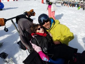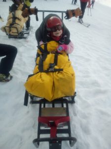 Lola a pu faire du ski avec un tandem ski grâce à l’association Handiski de la station La pierre St Martin.